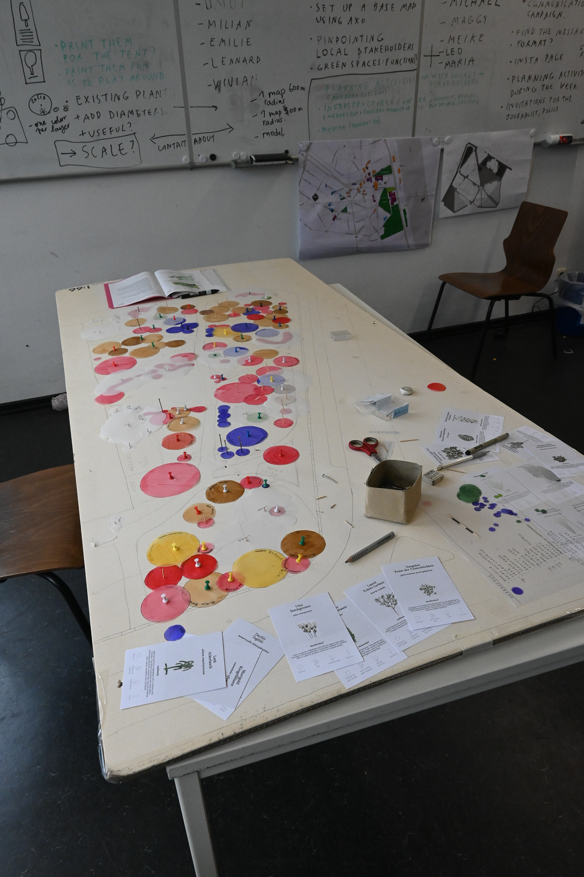 Under the leadership of Anna Luz Pueyo, we hosted an action day in April 2024 to engage with the neighbourhood. On this occasion, three maps where designed and presented: a map of the future Vielwald, a map of stakeholders within a 300 metres radius, and a map of stakeholders within a 600 metres radius.